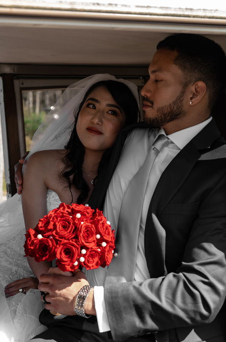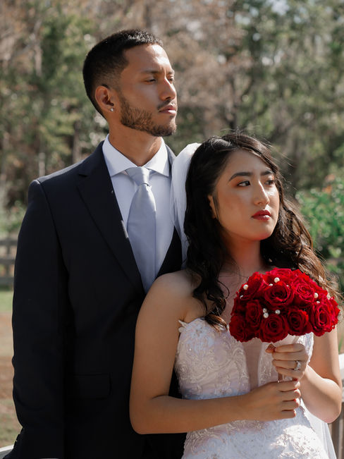 Meet Felix and Autumn. This young, elegant couple leaves their audience in awe as every gesture caresses the deep, velvet bouquet. This couple models for a preserved floral company, Fiorebela.
